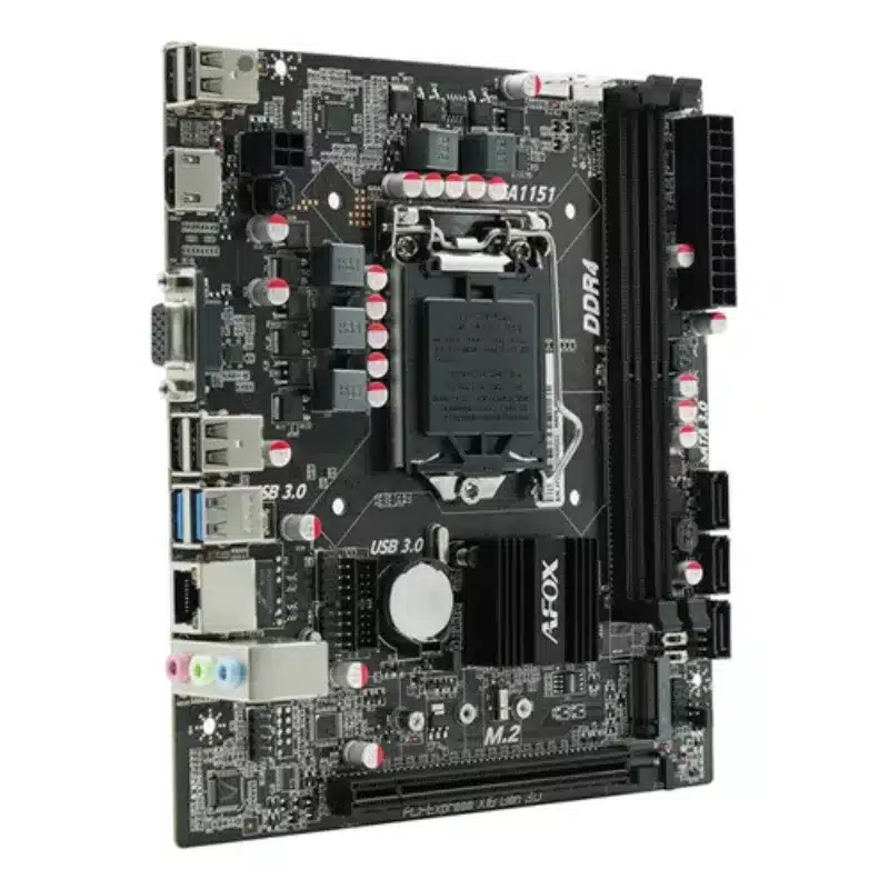 La AFOX IH110D4‑MA5‑V2 es una placa base compacta y asequible diseñada para crear equipos de escritorio eficientes y versátiles sin complicaciones. Por un precio accesible, proporciona una base sólida para proyectos de oficina, multimedia o incluso gaming ligero. Al integrar el chipset Intel H110 y el socket LGA1151, esta placa permite utilizar procesadores Intel de 6.ª a 9.ª generación, incluyendo versiones i7, i5, i3, Pentium y Celeron, lo que significa que podrás elegir entre una amplia variedad de CPUs según tu presupuesto y necesidades.