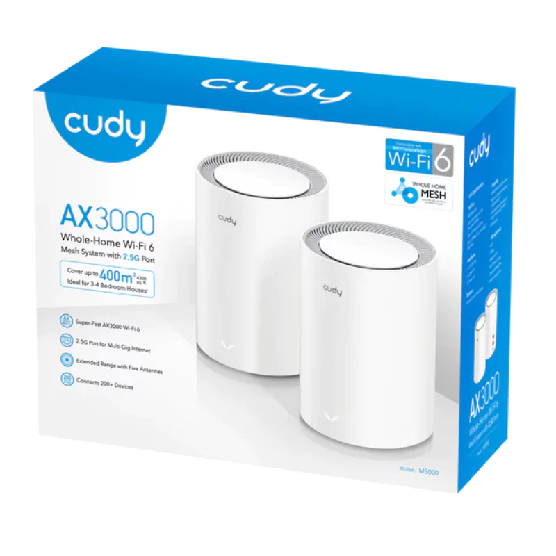 Con el Cudy M3000 AX3000 Mesh 2‑Pack, tendrás una red moderna, rápida y segura, optimizada para las necesidades digitales actuales y futuras.