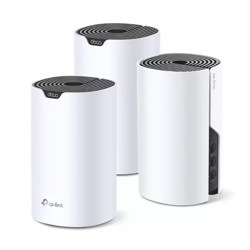 El diseño elegante y compacto de cada Deco se adapta perfectamente a cualquier espacio. La caja incluye tres unidades Deco S7, tres adaptadores de corriente, un cable Ethernet RJ45 y la guía de instalación rápida.