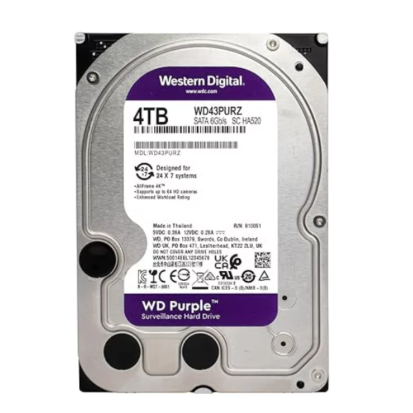 Con este disco duro tendrás un sistema de grabación confiable, seguro y preparado para trabajar día y noche. Si buscas capacidad, durabilidad y eficiencia, el Western Digital Purpura 4TB es la elección perfecta para tu sistema de videovigilancia.