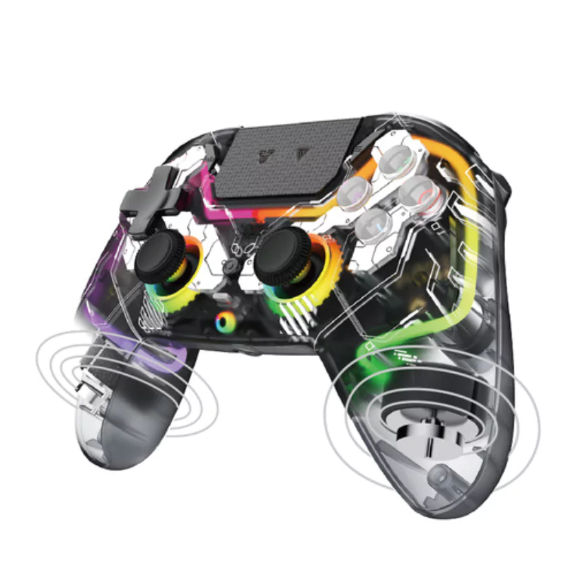 El mando ofrece retroalimentación por vibración, touchpad funcional, y hasta 4 efectos de iluminación RGB, lo que añade estilo e inmersión en tus partidas. La batería de 600 mAh proporciona alrededor de 10 horas de uso continuo, y se recarga en unas 2 horas mediante el cable incluido.