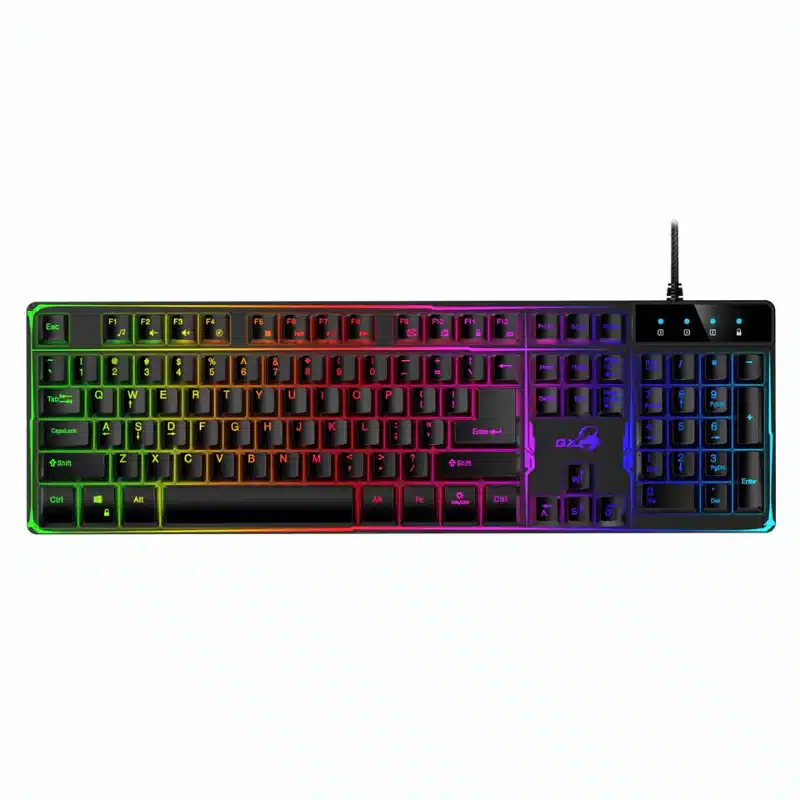 El Teclado Genius Scorpion K8 es un teclado gamer diseñado para brindar una experiencia de juego cómoda, precisa y visualmente atractiva. Con su estructura robusta, teclas flotantes y retroiluminación LED en 7 colores, se adapta perfectamente a cualquier setup, ya sea para videojuegos, trabajo o estudio.